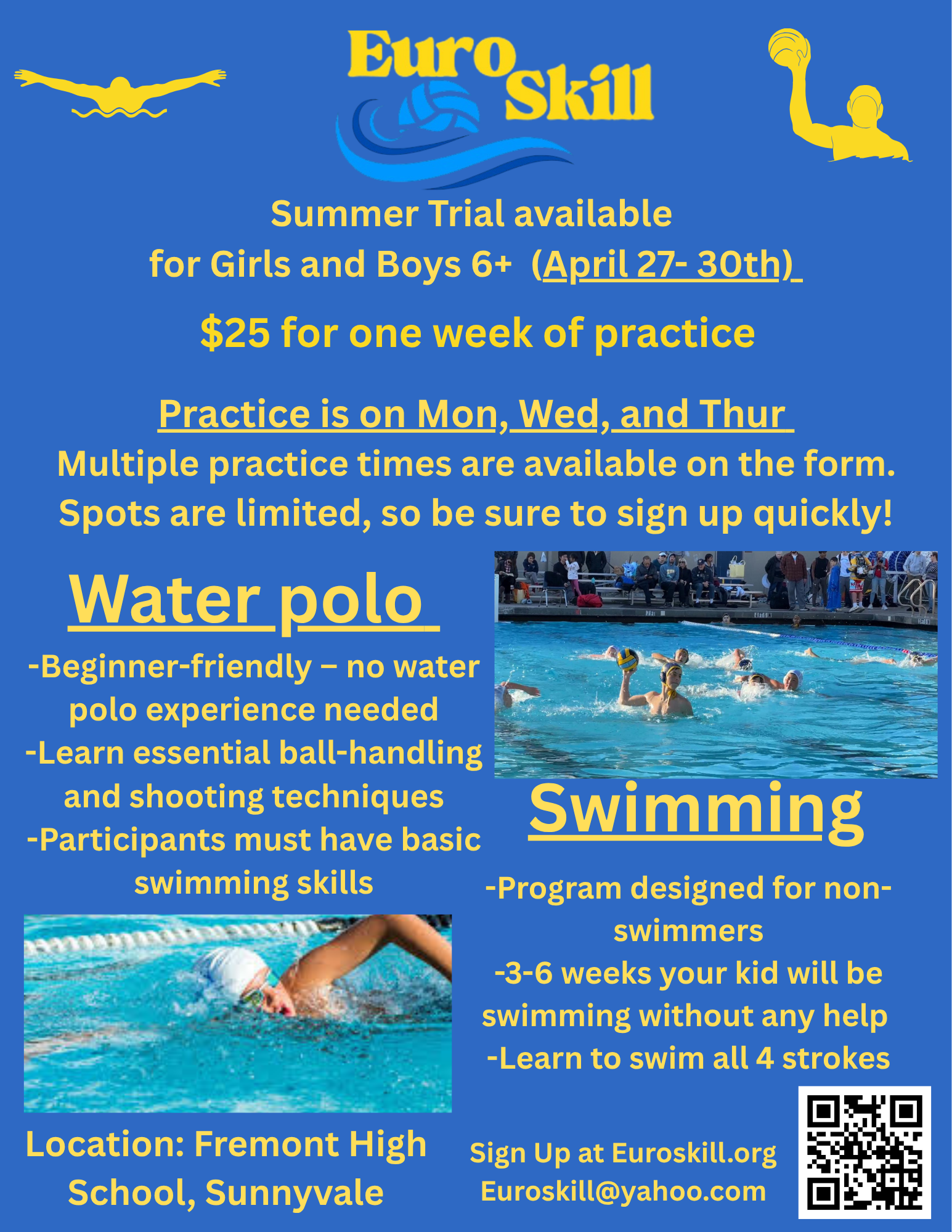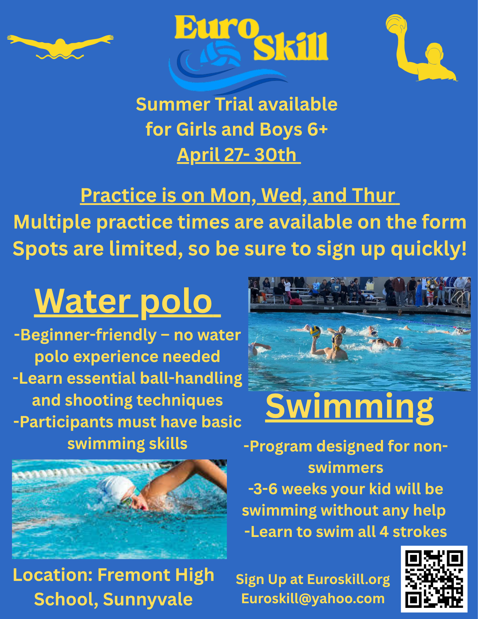 Dive into the excitement of aquatic sports with our year-round introductory sessions in water polo and swimming! Perfect for youth ages 6 and up, our programs provide a fun and supportive environment to explore the sport, build confidence, and develop new skills in the water.
